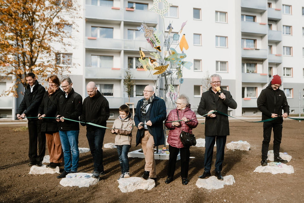 Dieses wahr gewordene Märchen feierte die Gebäude- und Wohnungsbaugesellschaft Wernigerode mbH, GWW, nun am 4. November 2023 mit ihren Mieterinnen und Mietern und zahlreichen Vertretern der Stadtgesellschaft. Symbolisch wurde ein grünes Band zur Eröffnung des Klima-Gartens und zum krönenden Abschluss der modernsten nachhaltigen GWW-Quartiersentwicklung durchtrennt. Die GWW investierte in das Projekt gesamt 10,4 Millionen Euro.