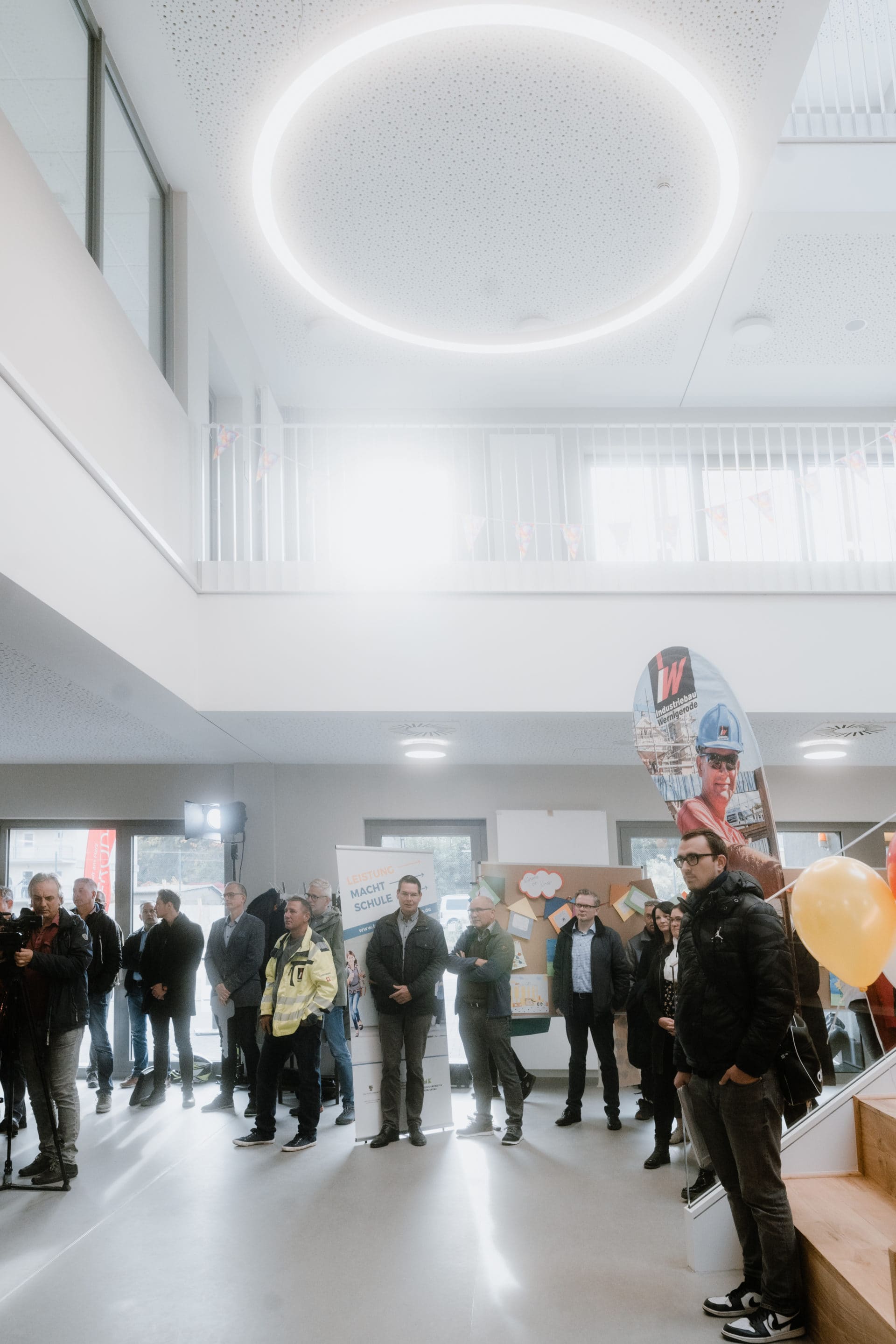 Bildungsstaatssekretär des Landes Sachsen-Anhalts, Frank Diesener, brachte zu Beginn der Eröffnungsveranstaltung seine Hochachtung zum Ausdruck, „dass es gelungen ist, in Zeiten voller Widrigkeiten diesen hochmodernen Schulneubau so zügig und reibungslos fertigzustellen“.