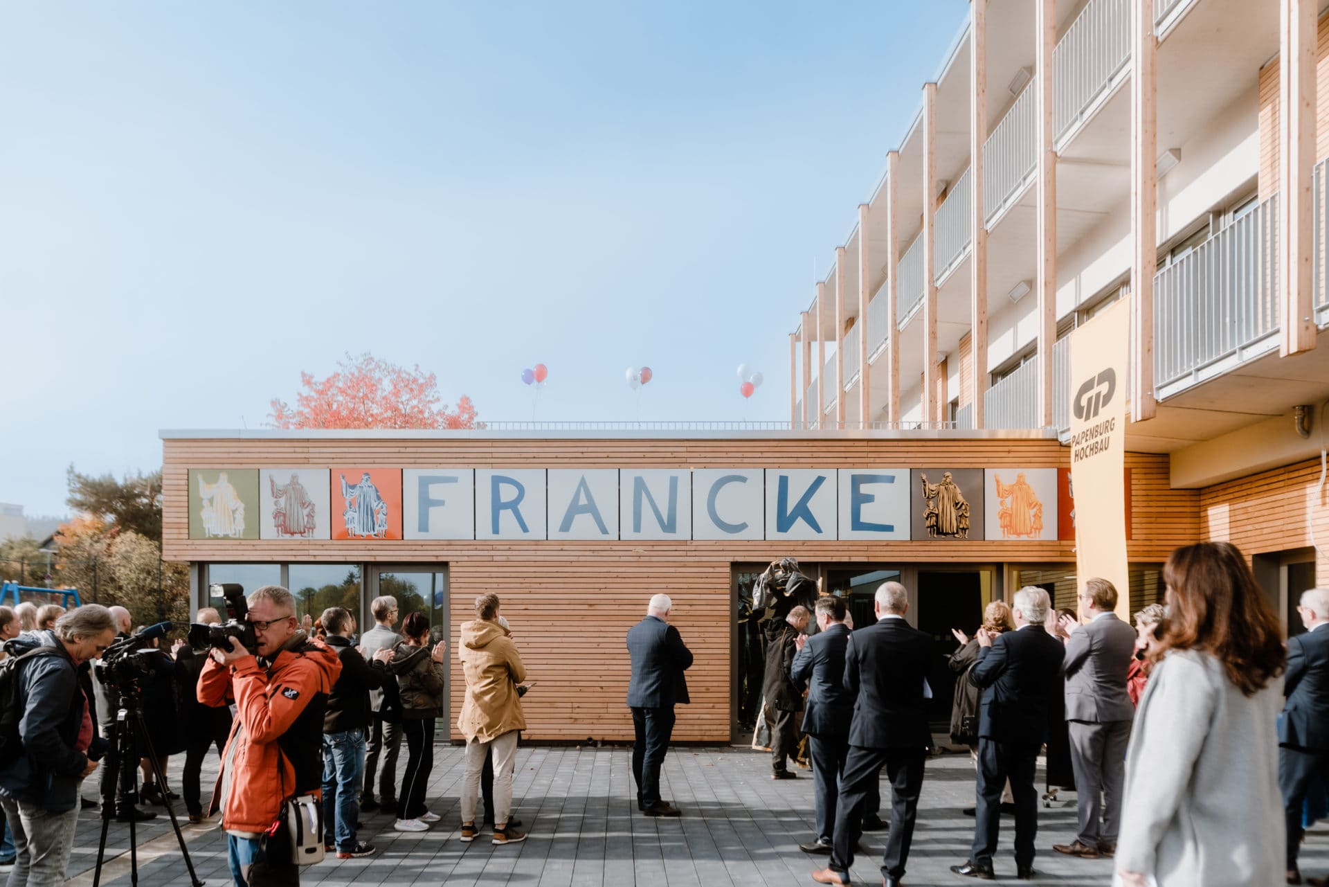 „Vom ersten Strich auf der Planungszeichnung bis zur Eröffnung sind keine drei Jahre ins Land gegangen. Architekten, Planer, Generalunternehmer, Baufirmen – Hunderte Menschen haben ihren Anteil daran, dass das alles trotz Corona so erstaunlich reibungslos funktionierte. Der Francke-Schulbau funktionierte wie ein Räderwerk, in dem alles passte“, so seine Eröffnungsworte.