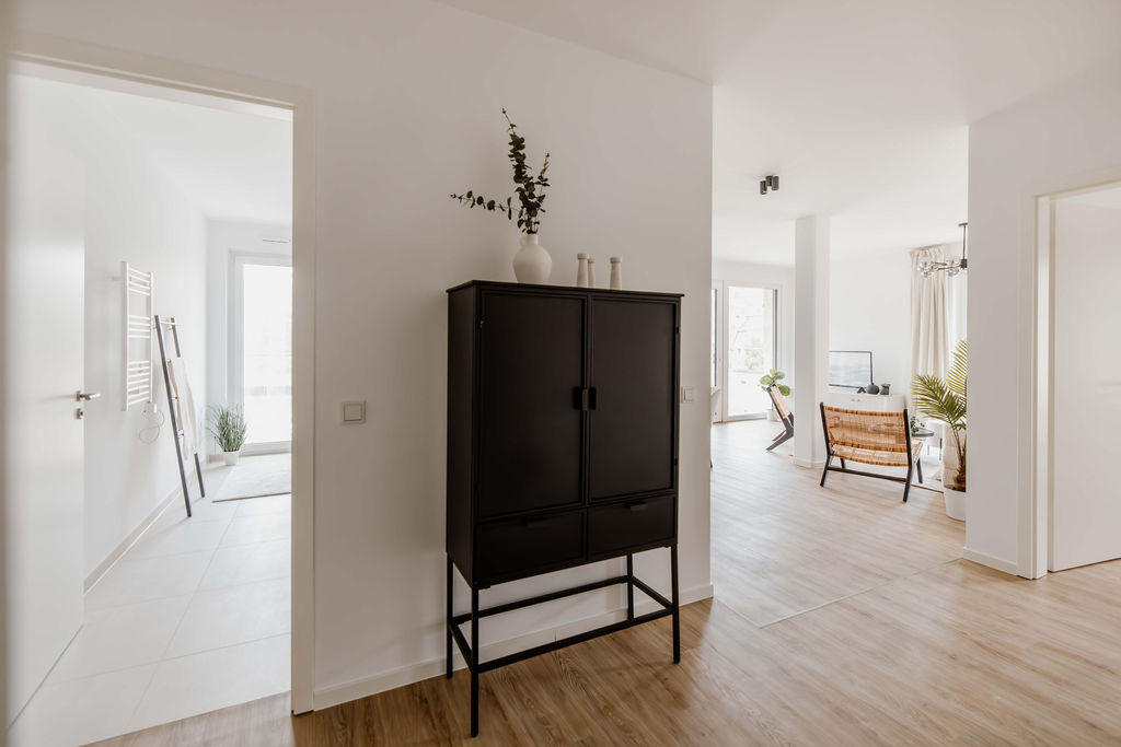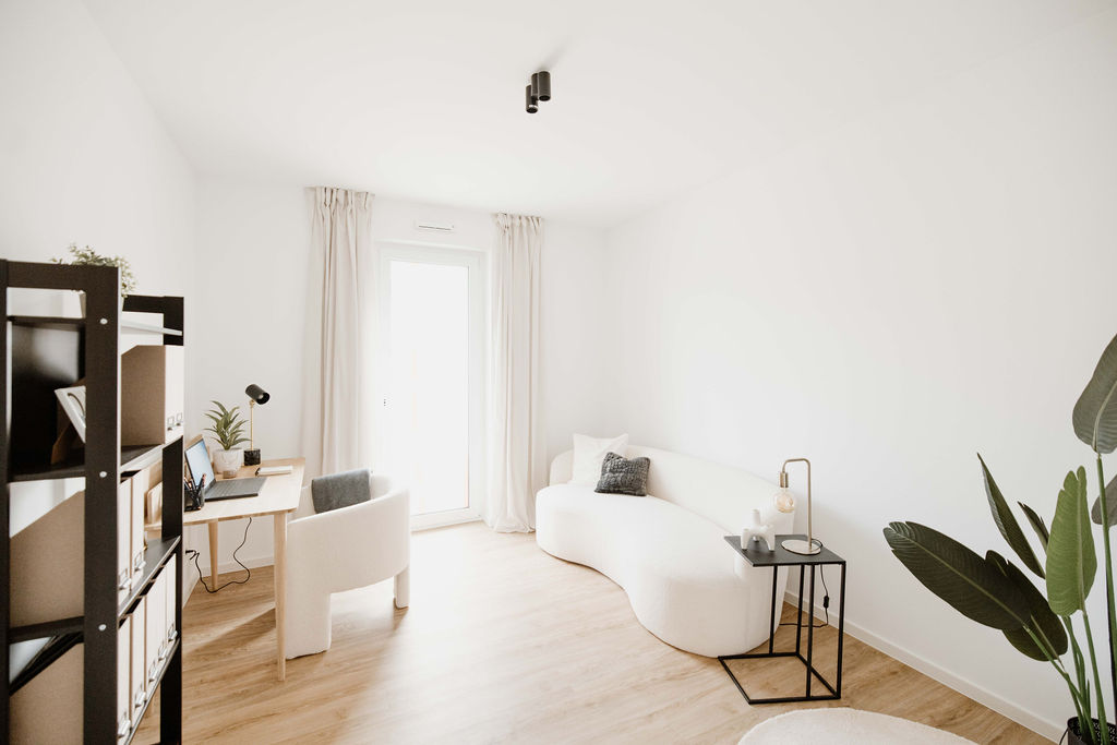 Die Musterwohnung gibt heute bereits einen Einblick in die Qualität, die in diesem Projekt erzielt wird. Die Fassade wird gemäß Architektenkonzept eine Begrünung und eine Holzverkleidung erhalten.