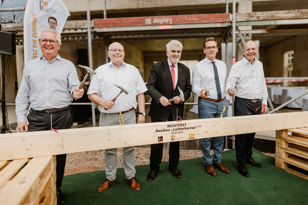 „Mit Stolz feiern wir die Fertigstellung des Rohbaus vom Lutherkarree.