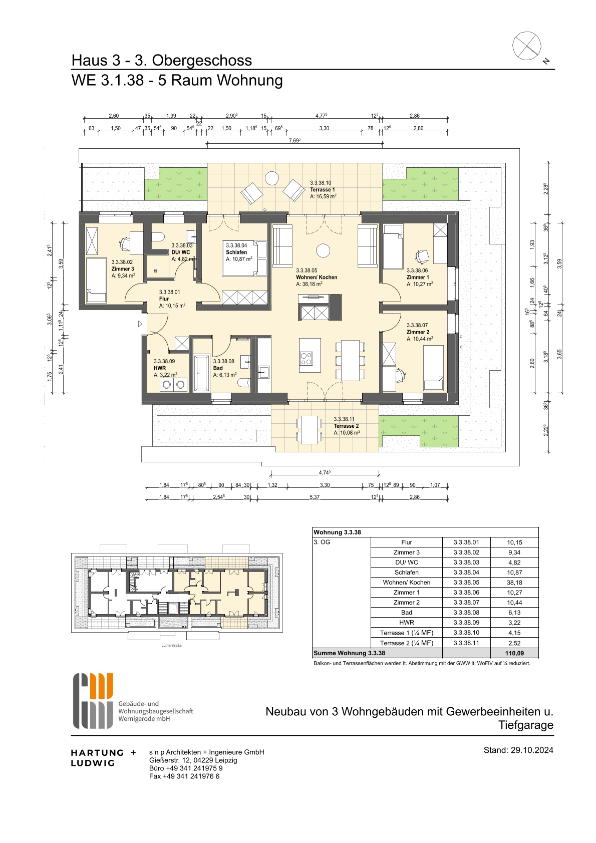- 38 Wohnungen (2- bis 5- Raum Wohnungen) mit 60 m² bis 120 m²