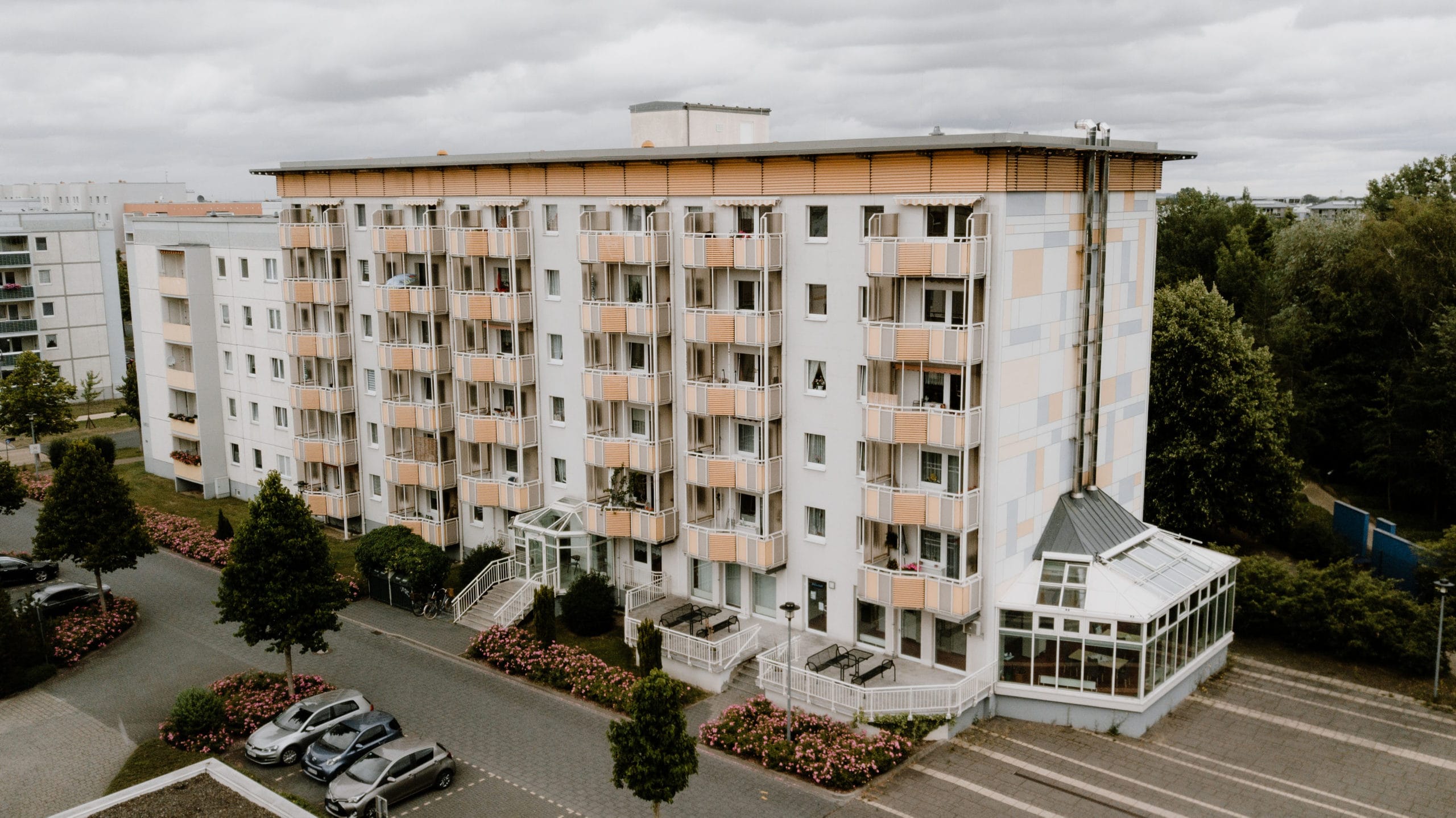 Das Wohngebäude ist an das zentrale Fernwärmenetz angeschlossen, und zugleich erfolgt eine Wärmerückgewinnung durch die kontrollierte Zu- und Abluftanlage. Eine besondere Aufwertung der Wohnqualität erfährt das Objekt durch die Installation eines Fahrstuhls, von dem aus jede Wohnung ab der 2. Etage über einen Laubengang barrierefrei zu erreichen ist. Des Weiteren verfügen alle Wohnungen über einen Balkon zur Südseite. Die Wohnungsausstattung folgt gehobenem Niveau.