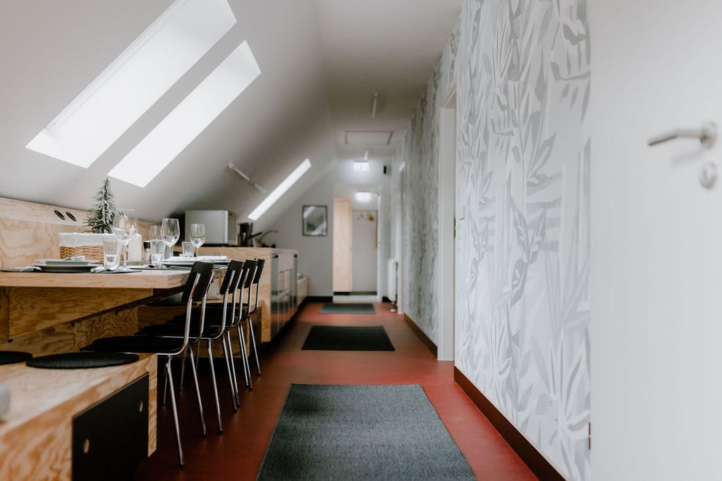 Hoch über der Stadt Wernigerode liegt unser 2020 modernisiertes Appartement „Am Salzbergtal“. Obwohl direkt vor der Haustür die ersten Wanderwege des sagenhaften Harzes beginnen, ist die Innenstadt innerhalb von 15 Minuten fußläufig zu erreichen. Unsere Unterkunft befindet sich im Dachgeschoss, das Sie bis zur 3.Etage mit dem Fahrstuhl und bis zur 4.Etage über das Treppenhaus erreichen können. Hinter dem Haus befindet sich ein PKW-Stellplatz, der für die Ferienwohnung reserviert ist. Kostenfreies WLAN steht Ihnen ebenfalls zur Verfügung. In unserem Objekt mit maßangefertigten Designermöbeln stehen Ihnen 2 Schlafzimmer mit je einem Doppelbett sowie jeweils einem separatem WC und einem Bad mit Dusche zur Verfügung. Im Wohnzimmer lässt sich das Sofa für 1-2 weitere Personen aufbetten. Die moderne offene lichtdurchflutete Wohnküche mit exklusiven Möbeln und gehobener Ausstattung bietet Komfort, Gemütlichkeit und genügend Platz für einen erholsamen Urlaub. Auf Wunsch stellen wir für unsere kleinen Gäste ein Kinderbett und einen Hochstuhl zur Verfügung.